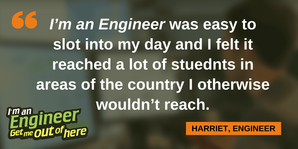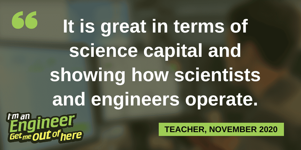 Unlike visiting lectures or science festivals, the I’m an Engineer activity is student-led. The text-based platform gives every student an equal voice, from the most confident to the most shy. Students are able to ask about the things that are most important to them and get personal answers and a 1-to-1 experience in return.